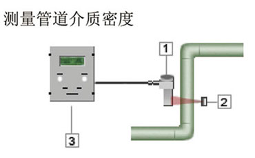 放射性密度計工作原理: 放射性密度計的工作原理是由放射源產(chǎn)生的伽馬射線穿過被測介質(zhì), 其中一部分射線被介質(zhì)吸收,剩余部分 射線被傳感器控制器所接收, 接收到的γ射線量越多,表明被測物密度越小,反之亦然,根據(jù)伽馬射線的衰減程度, 接收控制器 CPU 計算放射性通量的變化情況 從而測量被測介質(zhì)的密度, 并以標(biāo)準(zhǔn)的 4-20mA 電流形式 輸出。 | 測量管道介質(zhì)密度