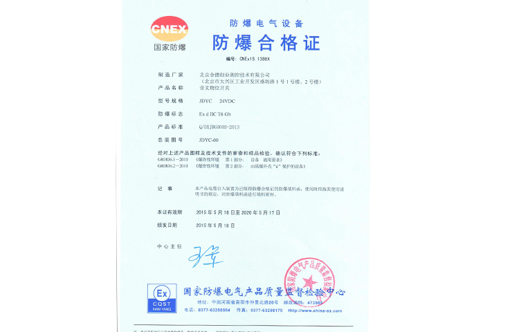 射頻導(dǎo)納開關(guān)防粉塵防爆合格證